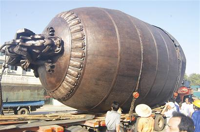 武漢重工鑄鍛有限公司負(fù)責(zé)人14日介紹說(shuō),該鐘由廣西柳州西來(lái)寺訂購(gòu),2009年7月開(kāi)始鑄造,經(jīng)過(guò)激光刻字、外模拼裝、泥芯鑄造、鑄型烘烤、整體澆鑄等10多道復(fù)雜工序后,目前大鐘正在做外表清整,預(yù)計(jì)本月底完工。佛鐘將于7~9月份通過(guò)水路運(yùn)輸,經(jīng)長(zhǎng)江運(yùn)往上海,再海運(yùn)至廣州,經(jīng)珠江水系至柳江,最后到達(dá)西來(lái)古寺。