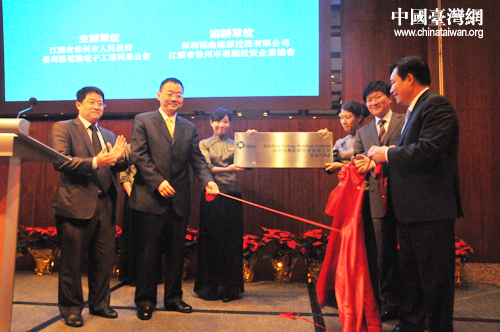 作為本次研討會的重頭戲和重要成果,保利協(xié)鑫能源控股有限公司臺灣代表處正式成立,徐州市委書記曹新平,保協(xié)鑫(集團(tuán))控股有限公司董事長、保利協(xié)鑫能源控股有限公司董事局主席朱共山先生,臺灣區(qū)電機(jī)電子工業(yè)同業(yè)公會理事長、華邦電子股份有限公司董事長焦佑鈞先生,協(xié)鑫光電科技發(fā)展有限公司常務(wù)副總裁兼臺灣代表處總裁單伶寶先生為保利協(xié)鑫公司臺灣代表處揭牌。這標(biāo)志著徐臺兩地“雙向投資”新階段的到來,從而拉開了徐資入島的序幕。