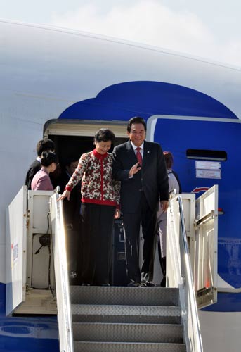 大陸海峽兩岸關系協會會長陳云林等人,20日中午搭機抵達桃園機場。陳云林直接下機,他向守候媒體及接機人員揮手。海峽交流基金會副董事長高孔廉等人前往接機,現場并有大批媒體守候。 “中央社”圖