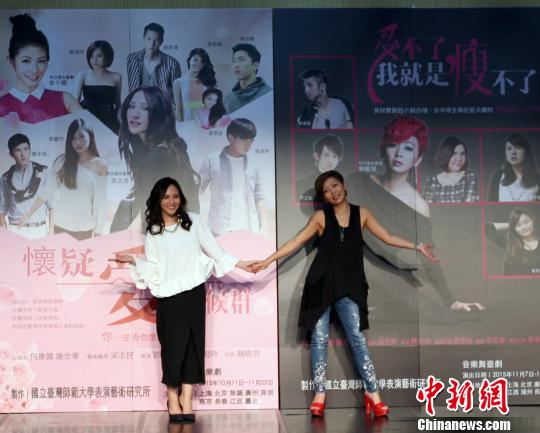 兩部由臺(tái)灣師范大學(xué)表演藝術(shù)研究所制作的原創(chuàng)音樂劇“懷疑愛·癥候群”和“受不了,我就是瘦不了”,將10月起在大陸上海、北京、長(zhǎng)春、廣州、深圳等地進(jìn)行30場(chǎng)以上演出。11月初,兩劇將回到臺(tái)北登場(chǎng)。圖為8日在臺(tái)北舉行的巡演記者會(huì)上,兩劇主創(chuàng)人員合影。(完) 邢利宇 攝
