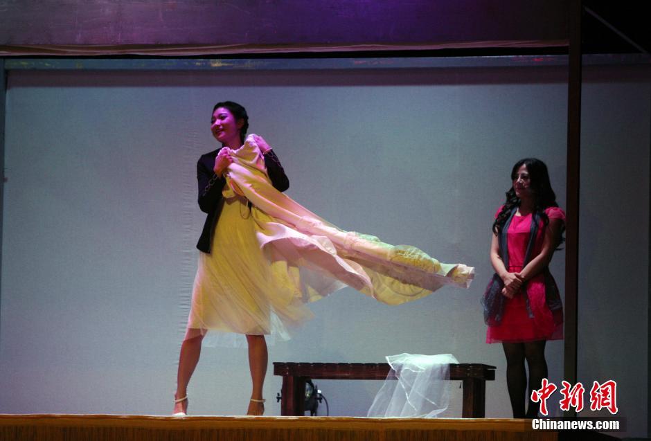 8月25日,演出現場。當日,臺灣人氣偶像音樂劇《懷疑愛 癥候群》在昆明劇院演出,該音樂劇描述了一對即將步入婚禮殿堂的戀人,因試穿婚紗而引發的一系列矛盾與糾結,從而導致婚前恐懼癥及情感危機的發生。據了解,該音樂劇于去年10月份完成了大陸近15個地方的巡演。該劇人氣偶像云集,由臺灣著名導演、票房大咖梁志民擔任藝術總監,臺灣師范大學表演藝術研究所所長何康國教授親自擔任制作人,更有臺灣人氣女星高慧君以及吳承璟等臺灣劇場界新生代優秀演員們共同參與演出,可謂是星光熠熠。中新社記者 李進紅 攝