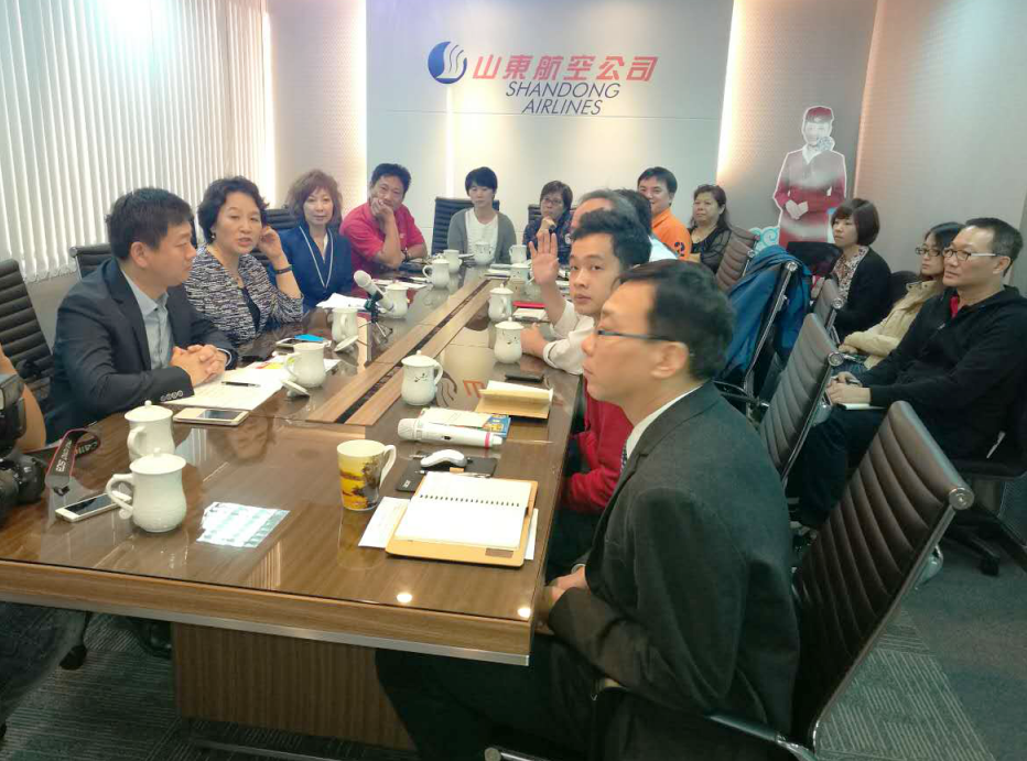 圖:山東代表團(tuán)與喜鴻旅行社座談交流 圖:山東代表團(tuán)與龍耀山東PAK及山東航空臺(tái)北辦事處等座談交流