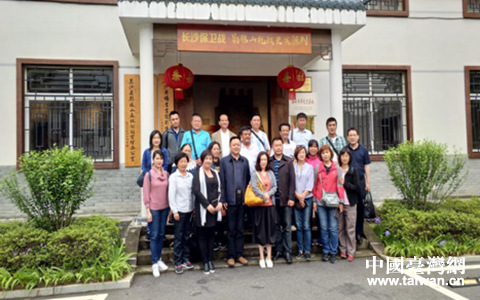 臺(tái)東縣議員團(tuán)一行在影珠山抗戰(zhàn)遺址文化陳列館前合影。(圖片來源:長沙縣委臺(tái)辦)
