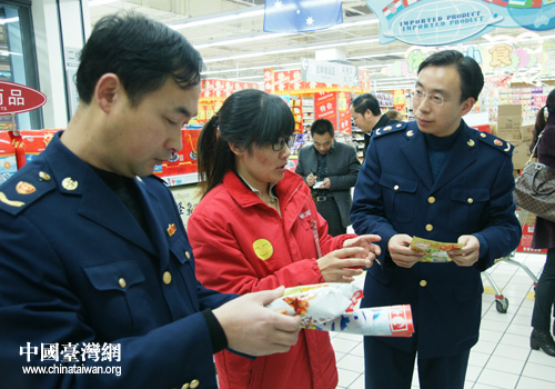 東臺(tái)工商局在東臺(tái)大潤(rùn)發(fā)商業(yè)有限公司現(xiàn)場(chǎng)指導(dǎo)企業(yè)加強(qiáng)食品安全管理。(圖片來源:東臺(tái)市臺(tái)辦)