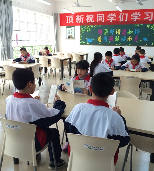 全南縣第四小學(xué)的學(xué)生在圖書室內(nèi)閱讀