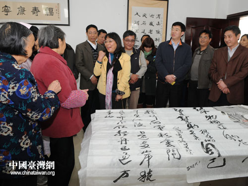 陳芳姿夫婦在綿陽市安縣社會福利中心看望慰問老人,并為共同做好老年人服務事業加油鼓勁。(四川省臺辦)