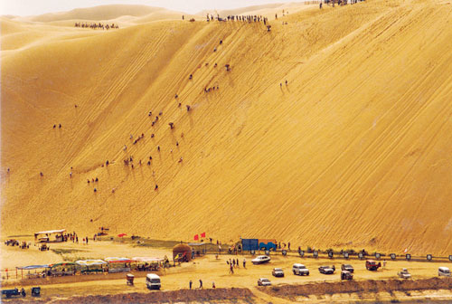 響沙灣融匯了雄渾的大漠文化和深厚的蒙古底蘊(yùn),匯萃了激情的沙漠活動(dòng)與獨(dú)特的民族風(fēng)情。她是中國(guó)AAAAA級(jí)旅游景區(qū)和中國(guó)西部最具發(fā)展?jié)摿β糜尉皡^(qū),擁有世界第一條沙漠索道,中國(guó)最大的駱駝群,中國(guó)一流的蒙古民族歌舞團(tuán),有十幾種驚險(xiǎn)刺激獨(dú)具沙漠旅游特色的活動(dòng)項(xiàng)目,讓您近距離親近浩瀚大漠,讓探險(xiǎn)之夢(mèng)成為可能!