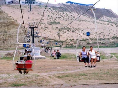 景區(qū)的基礎(chǔ)設(shè)施建設(shè)和配套服務(wù)項(xiàng)目齊全,首先由響沙灣自籌資金建設(shè)的響沙灣高速立交和3公里柏油馬路,這使去往響沙灣景區(qū)的交通更加便利暢通。有25000平方米的柏油面停車(chē)場(chǎng),有可接待300多人同時(shí)住宿的客房,有同時(shí)容納1000人就餐的三大餐廳(自助餐廳、婚宴餐廳、觀景餐廳,有1000多平方米購(gòu)物大廳,數(shù)百種旅游紀(jì)念品可供游客選擇。有5000多平方米的休閑廣場(chǎng),旅游旺季時(shí)廣場(chǎng)內(nèi)鮮花擁簇、蝶飛蜂繞,別有一番情趣。響沙灣旅游景區(qū)有滑沙板、騎馬、騎駱駝、沙漠卡丁車(chē)、沙漠摩托車(chē)、沙漠越野車(chē)、沙漠沖浪車(chē)、沙漠探險(xiǎn)車(chē)、沙漠牽引傘、乾坤球等好玩刺激的娛樂(lè)項(xiàng)目。另外響沙灣還有全長(zhǎng)498米的全國(guó)第一條沙漠索道,讓游客在乘坐索道的同時(shí)對(duì)浩瀚無(wú)垠的沙漠景觀一覽無(wú)余。