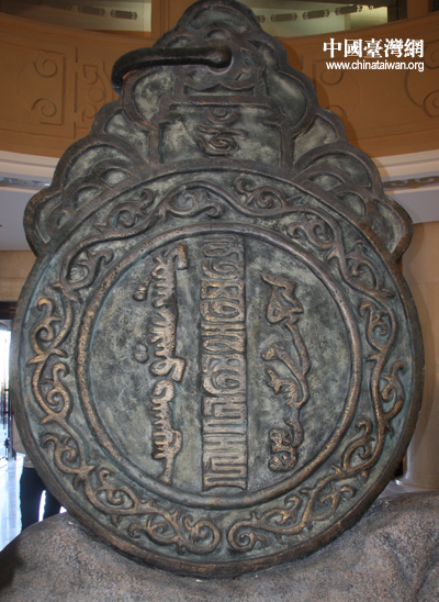 元代五體文夜巡牌是目前國(guó)內(nèi)外發(fā)現(xiàn)的唯一的多種文圓牌(中國(guó)臺(tái)灣網(wǎng) 陳寧 攝)