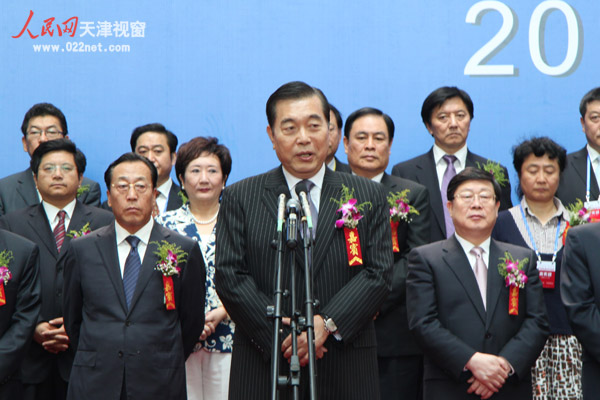 臺北世貿中心董事長王志剛在2010天津臺灣名品博覽會開幕式上致辭(隋毅 攝)