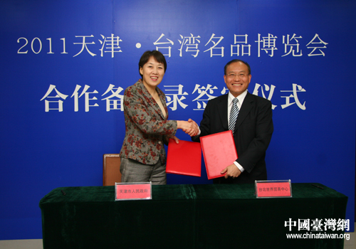 中國(guó)臺(tái)灣網(wǎng)3月7日天津消息 今天,天津市政府與臺(tái)北世界貿(mào)易中心簽署合作備忘錄,將于今年7月7日至10日,在天津梅江會(huì)展中心舉辦第二屆天津·臺(tái)灣名品博覽會(huì)。