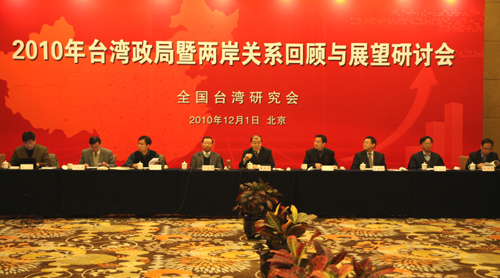 中國(guó)臺(tái)灣網(wǎng)12月1日北京消息 1日上午,全國(guó)臺(tái)灣研究會(huì)在北京舉辦“2010年臺(tái)灣政局暨兩岸關(guān)系回顧與展望”研討會(huì),邀請(qǐng)兩岸專家學(xué)者回顧和總結(jié)一年來(lái)的島內(nèi)政局與兩岸關(guān)系發(fā)展,以及臺(tái)灣年底“五市選舉”后的兩岸關(guān)系發(fā)展趨勢(shì)進(jìn)行深入探討。與會(huì)的四十余位專家學(xué)者來(lái)自全國(guó)各地包括海峽對(duì)岸的研究機(jī)構(gòu)和高校,海峽兩岸關(guān)系協(xié)會(huì)副會(huì)長(zhǎng)王在希、中華文化發(fā)展促進(jìn)會(huì)副會(huì)長(zhǎng)辛旗等出席了研討會(huì)。