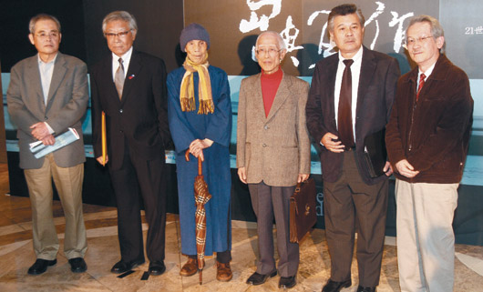 《他們在島嶼寫作》記錄6位文學大師身影,片中主角楊牧(左起)、鄭愁予、周夢蝶、余光中、林海音(已逝,由兒子夏祖焯代表)、王文興,昨天一同出席發布會。圖片來源:臺灣《聯合報》