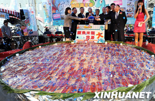 當天,為推廣促銷臺灣優質養殖水產品,“2009鰻魚嘉年華——鰻有意思”活動在臺北市舉行,現場展示了周長9.99米的大型鰻魚米糕,并開展各項魚產品試吃活動。新華社發(吳景騰 攝)