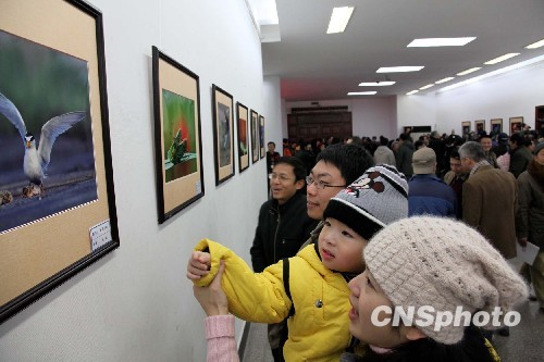 中新社福州一月九日電(張羽)九日上午,由福州市文聯和福州市攝影家協會主辦的首屆海峽兩岸生態攝影作品展在福州畫院開展,奚志農、陳加盛等兩岸著名生態攝影大師以“影像保護自然”的獨特方式,共同呼吁生態保護。