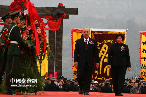 中國臺灣網(wǎng)4月5日西安消息 辛卯年清明公祭軒轅黃帝典禮5日上午在陜西省黃陵縣橋山祭祀大院隆重舉行。中國國民黨榮譽主席吳伯雄和夫人戴美玉應(yīng)邀參加,并敬獻花籃。(記者 李典典)