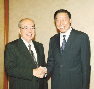 在簡要介紹了當前江蘇經濟社會發展情況后,羅志軍說,剛剛結束的第七屆兩岸經貿文化論壇取得了積極成果,參會各方達成19項共同建議。4天前,胡錦濤總書記在會見吳伯雄榮譽主席時就推動兩岸關系發展提出了4點意見,為開辟兩岸關系發展新局面指明了方向。江蘇與臺灣歷史情緣深厚,現實聯系緊密,有條件也有責任進一步密切交流聯系、促進合作雙贏,為推動兩岸關系和平發展作出新的更大貢獻。“十二五”期間,我們將堅決貫徹中央對臺工作總體部署和胡錦濤總書記關于推動兩岸關系發展的最新要求,抓住兩岸經濟調整轉型的重要機遇,在我省實施轉型升級、科技創新、農業現代化、文化建設、生態文明建設等“八項工程”,推進“兩個率先”的進程中,進一步加強蘇臺兩地在經貿、科技、文化、農業等各領域的交流合作,特別是要發揮兩地的互補優勢,深化新興產業尤其是現代服務業方面的合作,形成實實在在的成果。羅志軍熱忱邀請吳伯雄和臺灣朋友多來江蘇訪問,特別是到蘇北和沿海地區走一走看一看,深入了解江蘇,大力推介江蘇,共同推動蘇臺交流合作向更深層次、更廣領域、更高水平發展。