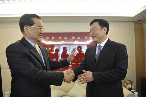 劉奇與連戰(zhàn)親切交談