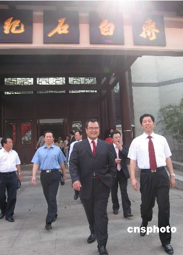 九月二十四日下午,中國國民黨副主席林益世(右二)一行抵達(dá)湘潭考察訪問,參觀了湘潭市區(qū)的東方紅廣場、齊白石紀(jì)念館和九華經(jīng)濟(jì)區(qū)。作為齊白石的畫迷,林益世盛贊齊白石畫藝超群。 中新社發(fā) 劉雙雙 攝