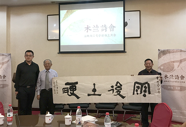 由臺北市青溪新文藝協(xié)會發(fā)起,北京城市未來文化藝術中心主辦的木蘭詩會暨海峽兩岸文學媒體交流會15日在京啟動。(中國臺灣網發(fā))