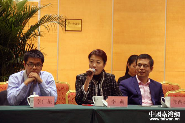 北京三替城市管理集團執行董事李萌交流創業心得。(中國臺灣網 孫伊靜 攝)