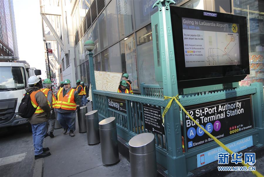 12月11日,在美國紐約市曼哈頓,紐約市運輸局工作人員在爆炸現(xiàn)場附近工作。當(dāng)日,美國紐約市曼哈頓中城發(fā)生爆炸,導(dǎo)致4人受傷,多條地鐵公交線停運。紐約市長德布拉西奧說,這是“一起未遂恐怖襲擊”。紐約警方表示,爆炸發(fā)生在早高峰時段,地點位于曼哈頓島42街第八大道的紐約港務(wù)局巴士總站,距紐約時報廣場不遠(yuǎn)。新華社記者 王迎 攝