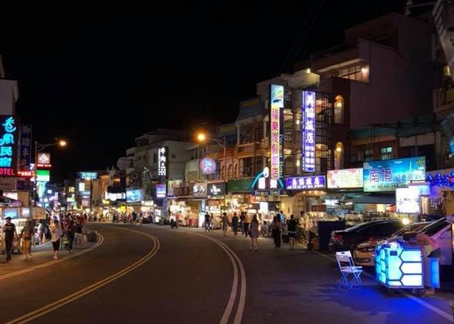網(wǎng)友認(rèn)為近日墾丁大街爆人潮是“幻覺”,貼出平常晚間街道照對比,顯得冷清許多。(圖片來源:“爆廢公社”)