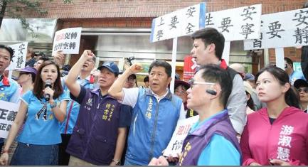 31日包括議員、里長等人帶著數十名居民拿著布條、標語,在“促轉會”大門口遞上陳情書,要求“未來只要陳抗就搬家!”(圖片取自臺媒)