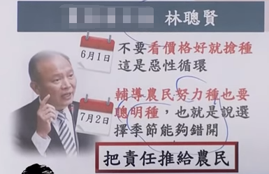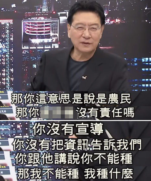 聽完林聰賢這番話,臺灣資深媒體人趙少康顯然不淡定了,他表示,民進黨當(dāng)局不做事先的宣導(dǎo),也沒有分享相關(guān)資訊,只是一句輕描淡寫的“聰明種”,就想要把責(zé)任推給農(nóng)民嗎?