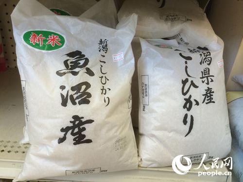 舊金山地區圣馬刁縣的Suruki Supermarket的經理Ken告訴記者,只有上周才從日本進口一個新米品牌。記者注意到包裝袋子上印著“新潟縣魚沼產”。雖然新潟縣的熊肉被禁,大米還是可以進口美國。人民網記者 韓莎莎攝