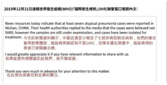 臺灣給世衛(wèi)的電郵,通篇沒見所謂提醒。(圖片來源網絡)