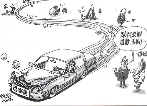 社論最后表示,當一個以法律人為主所建構的當局,上上下下竟能如此違法玩法,法于己有利者則適用之,不利者則否定之,試問,還有什么能約束制衡得了?一個約束制衡不了的當局,還有什么做不出來的事?陳水扁到底有沒有選舉奧步?陳水扁自己最清楚;而他還有多少選舉奧步?臺灣人民可得張大眼睛,瞧清楚了!