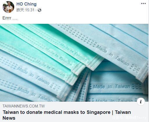 我們都知道,民進(jìn)黨當(dāng)局宣布捐贈1000萬個口罩給歐美地區(qū)后,又在日前表示將再捐贈100多萬個口罩給所謂的“新南向”地區(qū),新加坡也在捐贈范圍之內(nèi)。然而,新加坡總理夫人何晶11日在個人臉譜賬號上轉(zhuǎn)發(fā)臺灣擬捐贈口罩的新聞時,評論了這樣一個字“Errr…”(呃…)。此舉被一些臺灣網(wǎng)軍視為“不領(lǐng)情”,何晶很快被群起而攻之。她臉譜賬號的每一條貼文下面都被洗版,臺灣網(wǎng)軍使用了大量負(fù)面語言去攻擊她,說她忘恩負(fù)義,不懂“感恩”;有的甚至上升到對她的人身攻擊,或者攻擊新加坡這個國家;還有人稱,應(yīng)該把口罩要回來送給美國,甚至要求何晶“向臺灣道歉”。