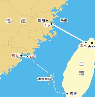 廈門和金門直通海纜,等于是兩岸直接拉起一條溝通橋梁,業者預估距離約五六十公里,如果加上包括登陸點的陸纜,大約100公里;而福州長樂到臺北淡水全長240公里。