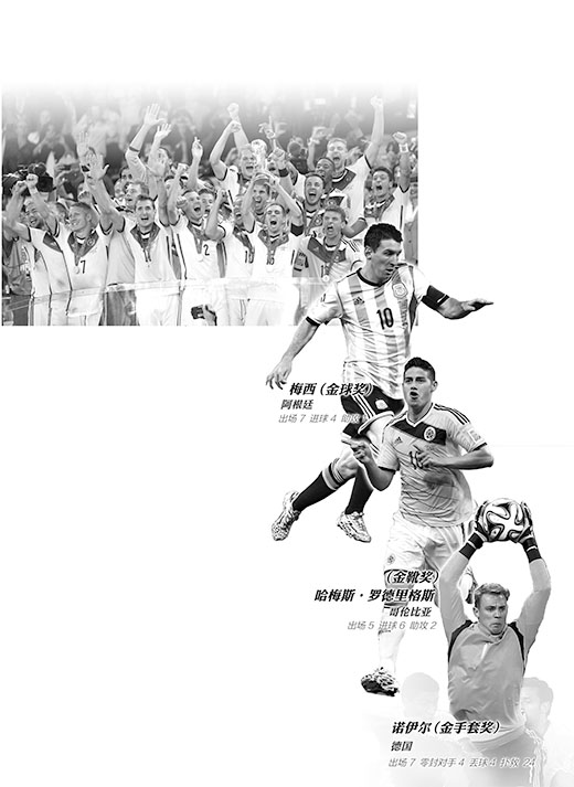 決賽中決定冠軍歸屬的唯一一個進球,成為巴西世界杯上的第171個進球,恰好追平了1998年法國世界杯的進球紀錄。然而,層出不窮的進球并不意味著精彩,球迷們在這屆比賽中只看到了多支強隊遭受屠戮的“慘劇”,沒有看到幾場能夠留存在記憶深處的名局。