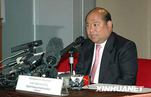 8月4日,曼谷航空公司總裁普提蓬·巴薩通奧索在曼谷召開的新聞發布會上就客機滑出跑道事故發表講話。新華社發(塔納攝)