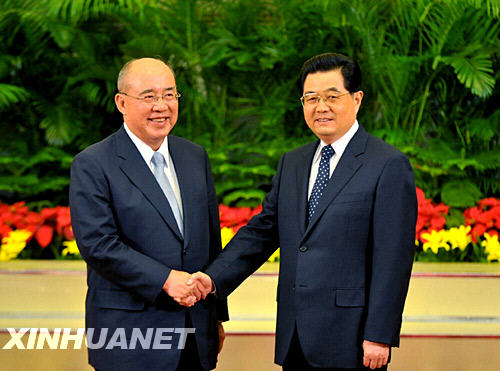 5月28日,中共中央總書記胡錦濤在北京人民大會(huì)堂迎賓廳會(huì)見中國(guó)國(guó)民黨主席吳伯雄和他率領(lǐng)的中國(guó)國(guó)民黨大陸訪問團(tuán)全體成員。這是胡錦濤同吳伯雄親切握手。 新華社發(fā)(李舸攝)
