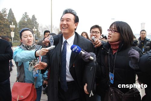 3月3日下午,海峽兩岸關(guān)系協(xié)會會長陳云林在人民大會堂前接受媒體采訪。 中新社發(fā) 韓海冰 攝