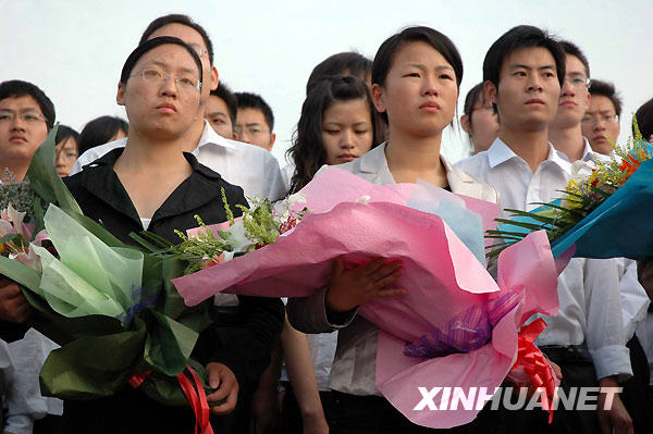 10月26日,長江大學(xué)的學(xué)生們自發(fā)來到江邊,表達對昔日伙伴的哀悼。新華社記者 魏夢佳 攝