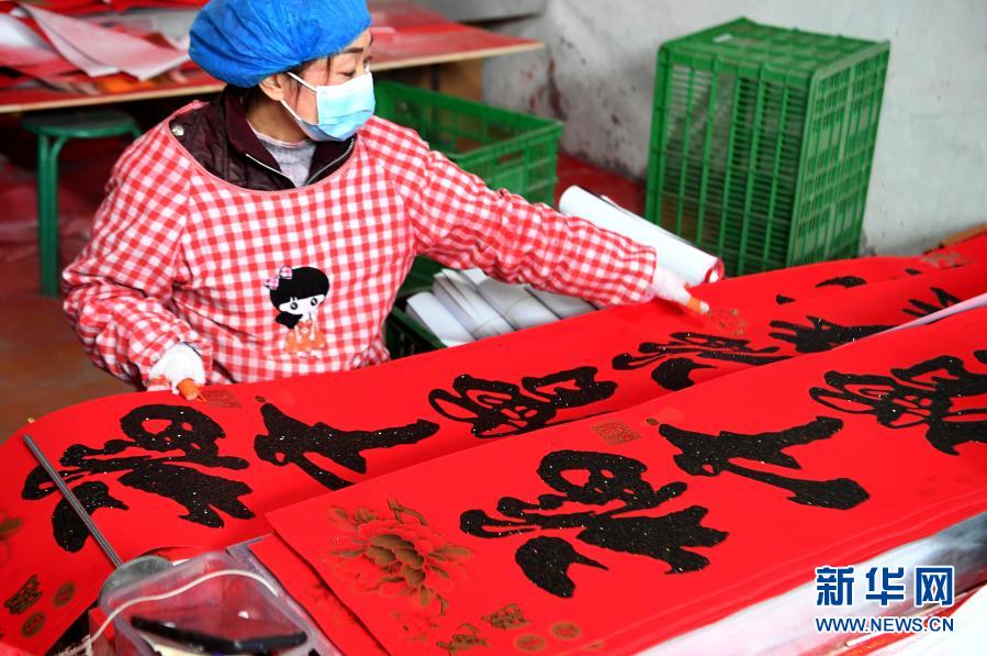 1月20日,溫縣趙堡鎮(zhèn)趙堡村村民在包裝春聯(lián)。