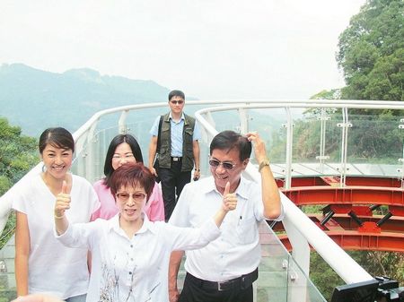 洪秀柱到中寮鄉的天空步道,她豎起大姆指說“贊”。來源:臺灣《聯合晚報》