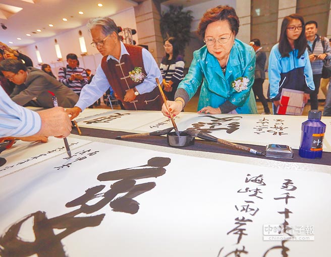 2016年兩岸年度漢字評選在《中國時報》大樓揭曉,最后由“變”字當選,16位兩岸書法家齊聚一堂寫下“變”字。(圖片來源:臺灣《中時電子報》)