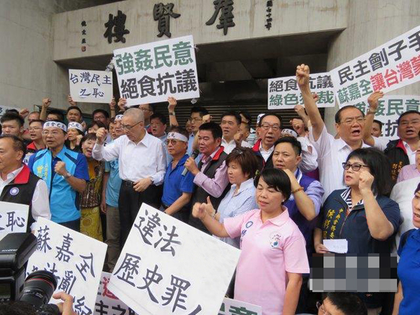 中常會結束后,吳敦義隨即率國民黨中常委及支持者前往聲援目前正絕食抗議的國民黨“立委”,并高喊“拼了”。