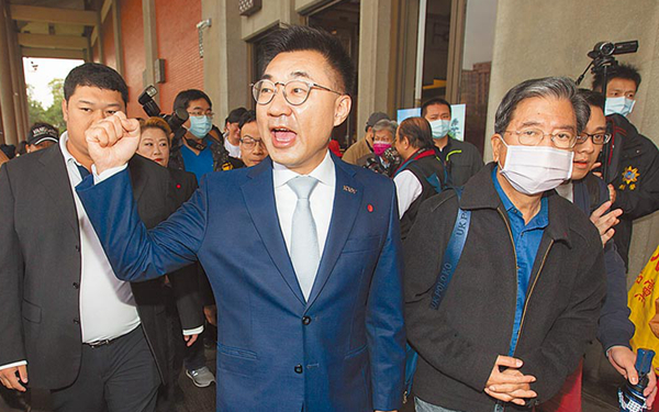 國民黨主席江啟臣(中)。(圖片來源:臺(tái)灣“中時(shí)電子報(bào)”)