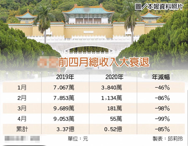 中國臺灣網(wǎng)5月7日訊 新冠肺炎疫情沖擊臺灣各行各業(yè),仰賴觀光收入的臺北博物院也受到嚴(yán)重影響。綜合臺媒報道,國民黨民意代表林奕華6日在臺立法機(jī)構(gòu)質(zhì)詢時表示,臺北故宮門票收入自2月起一路慘跌,4月僅有55萬元(新臺幣,下同),創(chuàng)歷史新低,相較于去年同期的9000多萬元慘跌99%。
