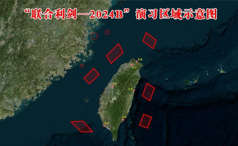 10月14日,中國人民解放軍東部戰(zhàn)區(qū)組織戰(zhàn)區(qū)陸軍、海軍、空軍、火箭軍等兵力,位臺(tái)灣海峽、臺(tái)島北部、臺(tái)島南部、臺(tái)島以東,開展“聯(lián)合利劍-2024B”演習(xí),艦機(jī)多向抵近臺(tái)島,諸軍兵種聯(lián)合突擊,重點(diǎn)演練海空戰(zhàn)備警巡、要港要域封控、對(duì)海對(duì)陸打擊、奪取綜合制權(quán)等科目,檢驗(yàn)戰(zhàn)區(qū)部隊(duì)聯(lián)合作戰(zhàn)實(shí)戰(zhàn)能力。