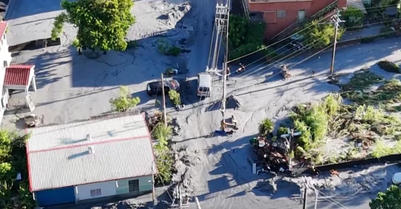 臺灣花蓮馬太鞍溪堰塞湖23日潰壩,水淹光復鄉釀成重災。(圖片來源:臺灣“東森新聞”)