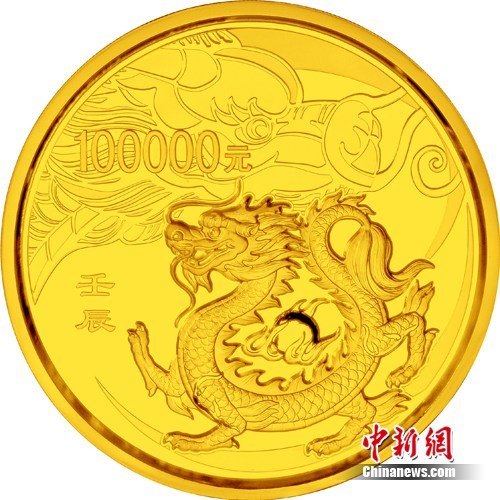 圖為中國人民銀行發行的2012年壬辰龍年圓形10公斤紀念金幣背面。