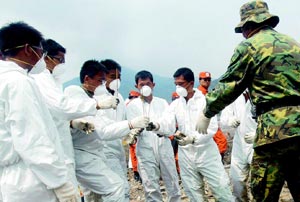 臺當局“衛生署長”楊志良說,當災民們看到志工及臺軍官兵都戴上口罩時,或許心里會覺得怪怪的,但還請大家見諒,因為這也是為了保護災民。由于甲型H1N1流感好發于年輕人,戴上口罩,這也讓救災的年輕士兵多了一層保障。