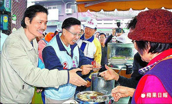 金溥聰(左)大年初一便投入“立委”補(bǔ)選輔選,干勁十足。資料照片